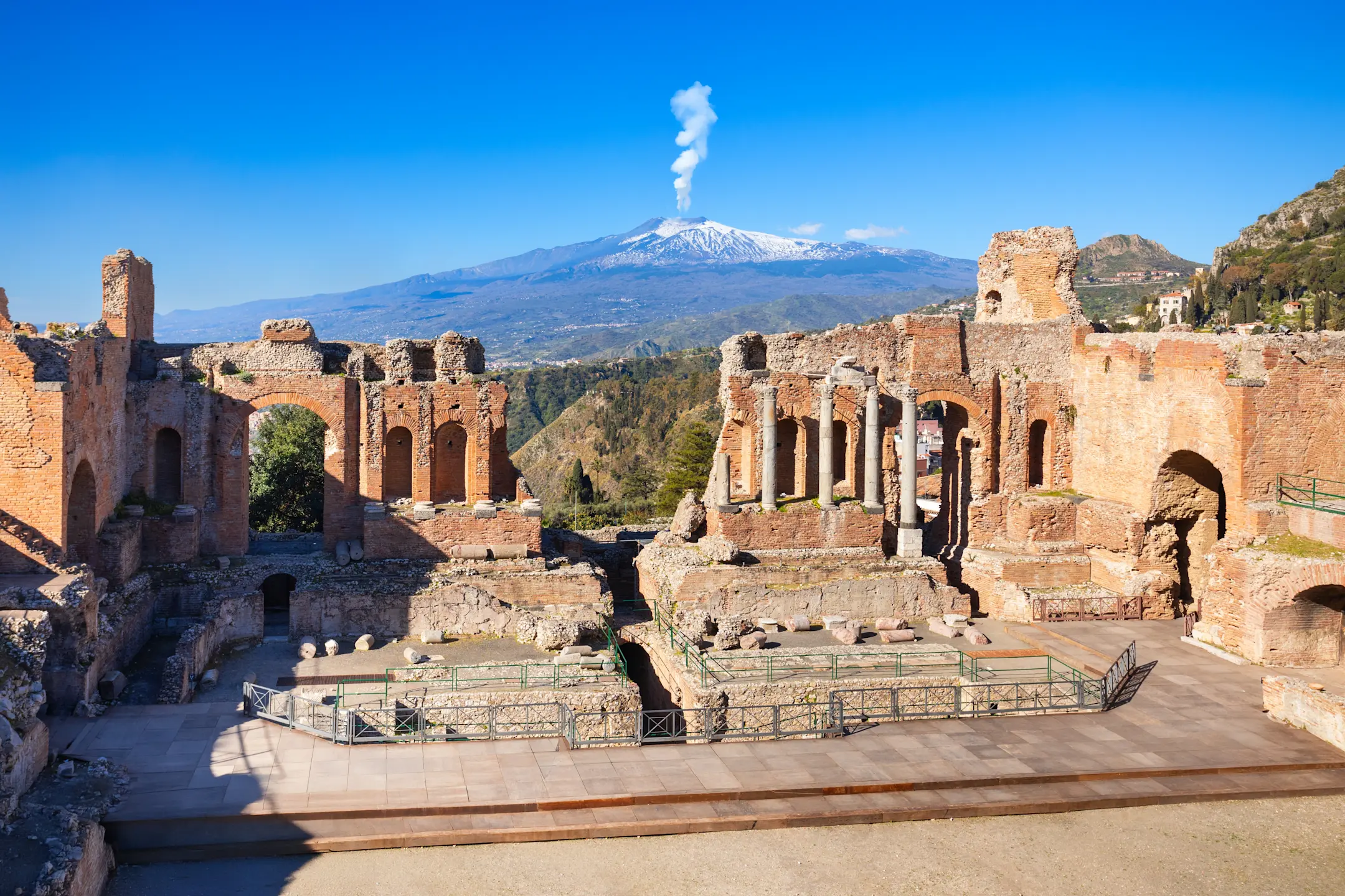 Desayuno. Salida hacia el monte Etna (sujeto a condiciones meteorológicas), el volcán más alto, y aún activo, de Europa (3.345 metros). El autobús llegará hasta el Refugio Sapienza a 1.800 metros de altitud. Visita de los cráteres apagados, los llamados “Crateri Silvestri”. Almuerzo a los pies del Etna. Continuación a Taormina, situada en la cumbre de la pintoresca roca del monte Tauro. Tiempo libre hasta nuestro regreso a Catania, donde realizaremos una visita panorámica. Alojamiento.